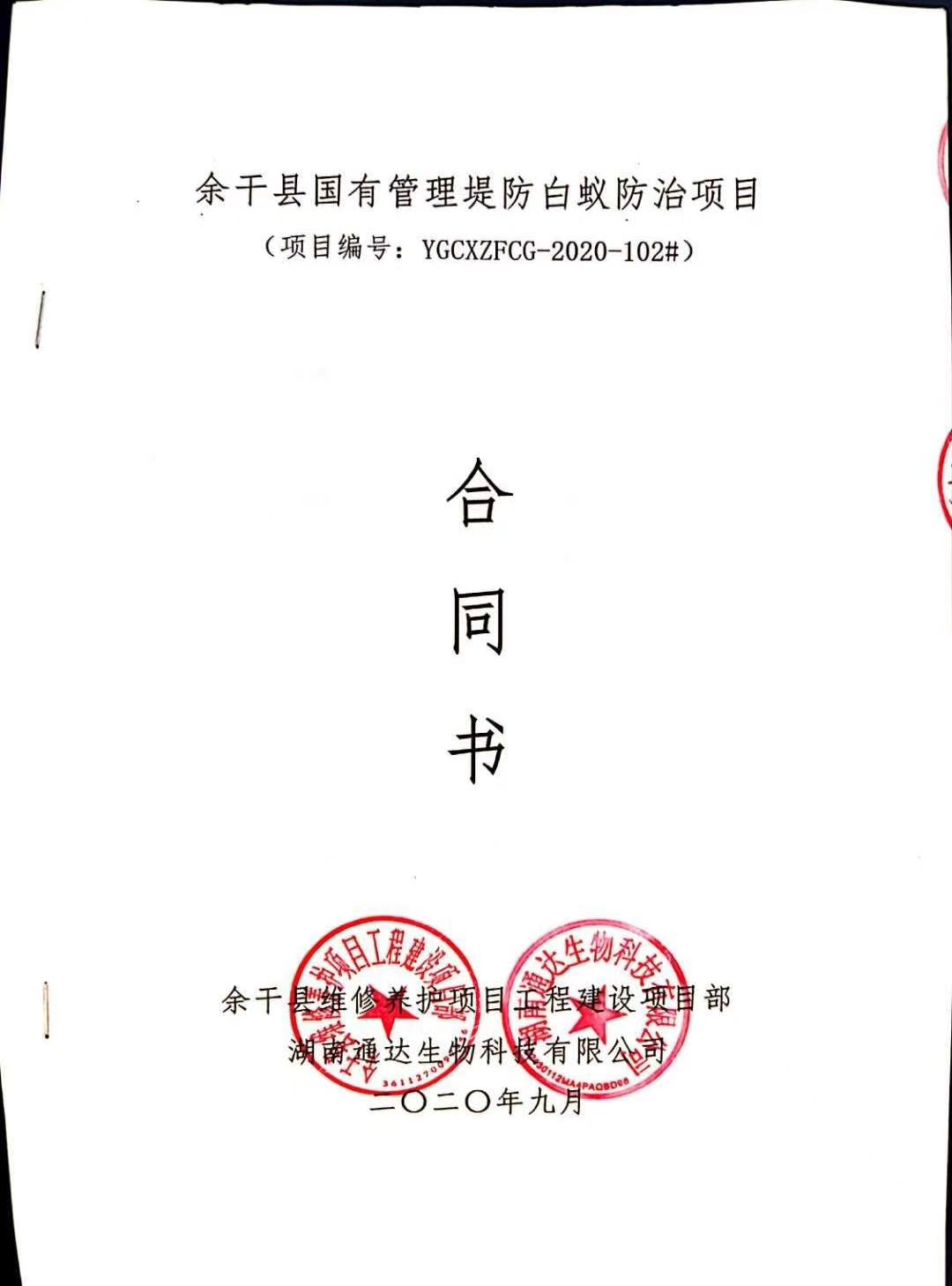 湖南通达生物科技有限公司中标余干县国有管理堤防白蚁防治项目